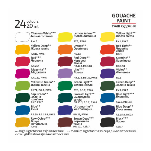 Набор гуаши ROSA Studio 20 мл 24 цв
